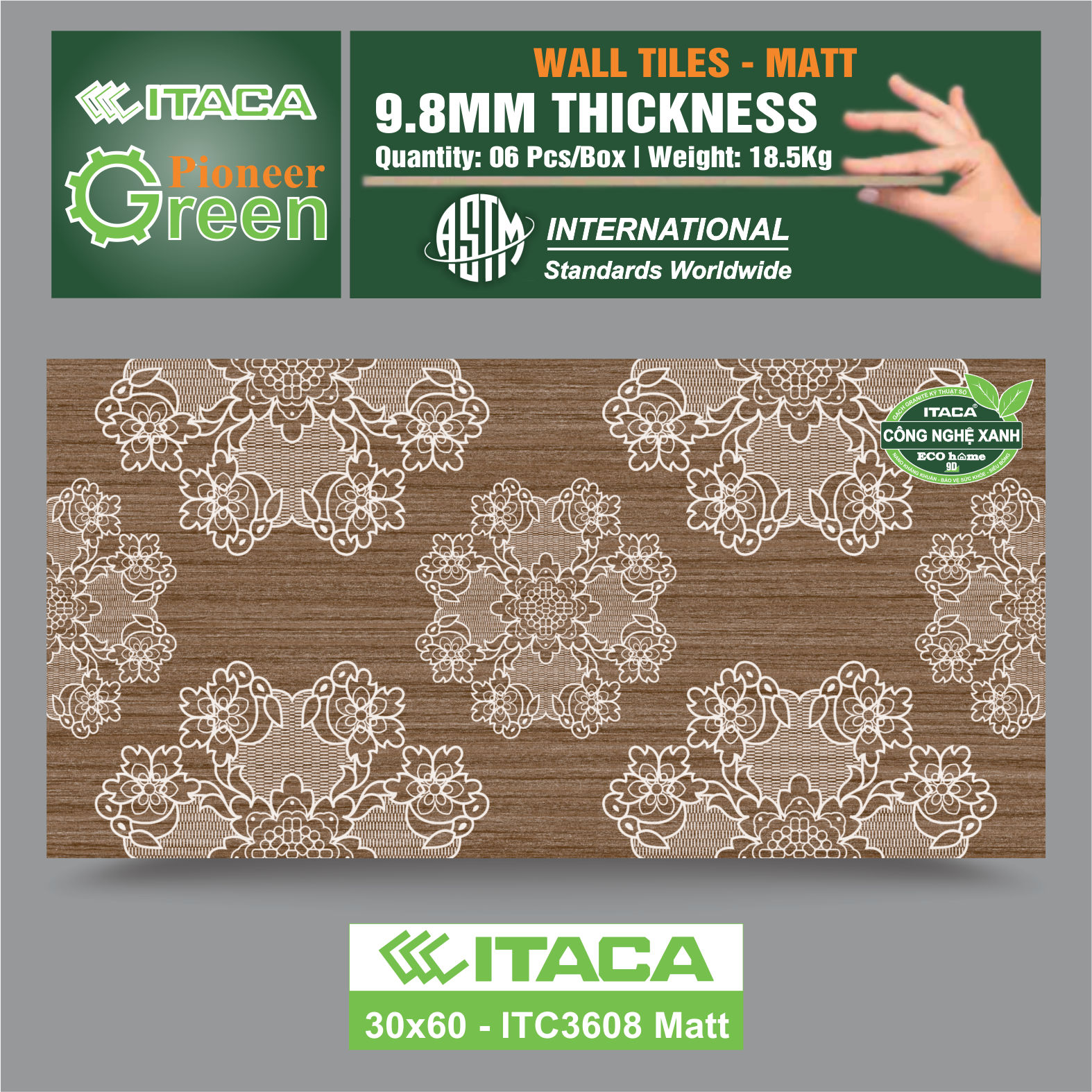 Gạch ốp tường ITACA ứng dụng Công nghệ xanh - thân thiện môi trường, bảo vệ sức khỏe.