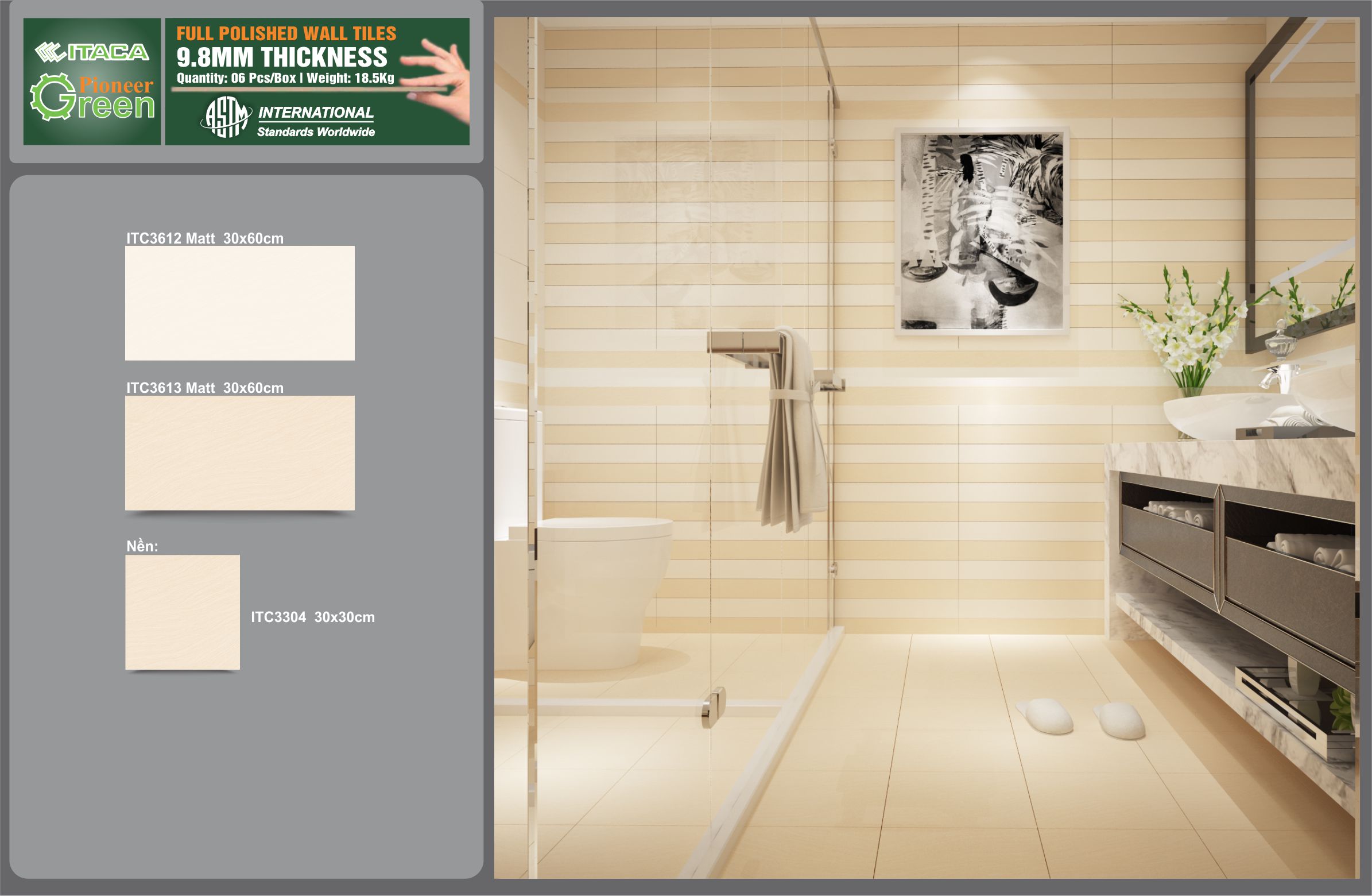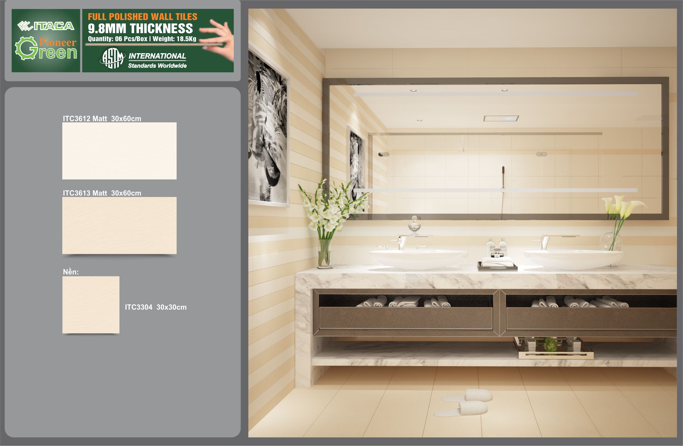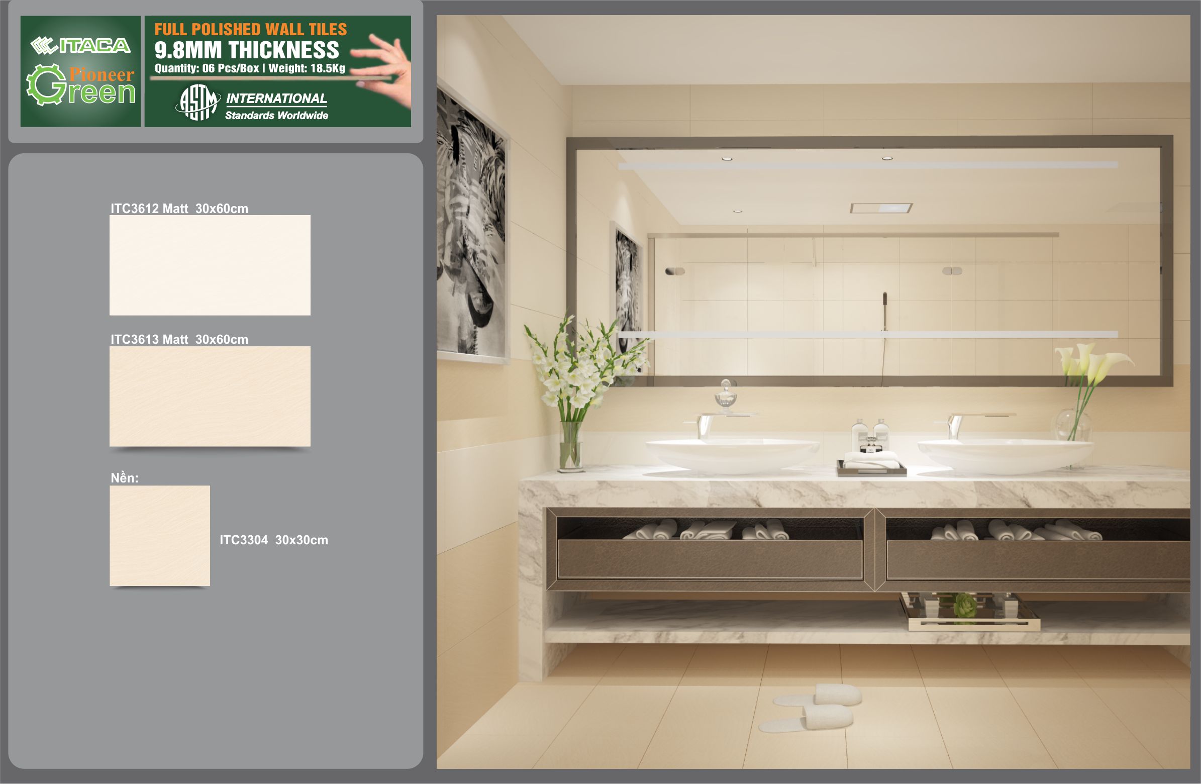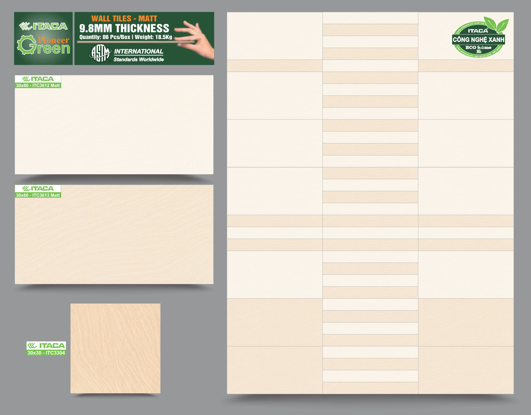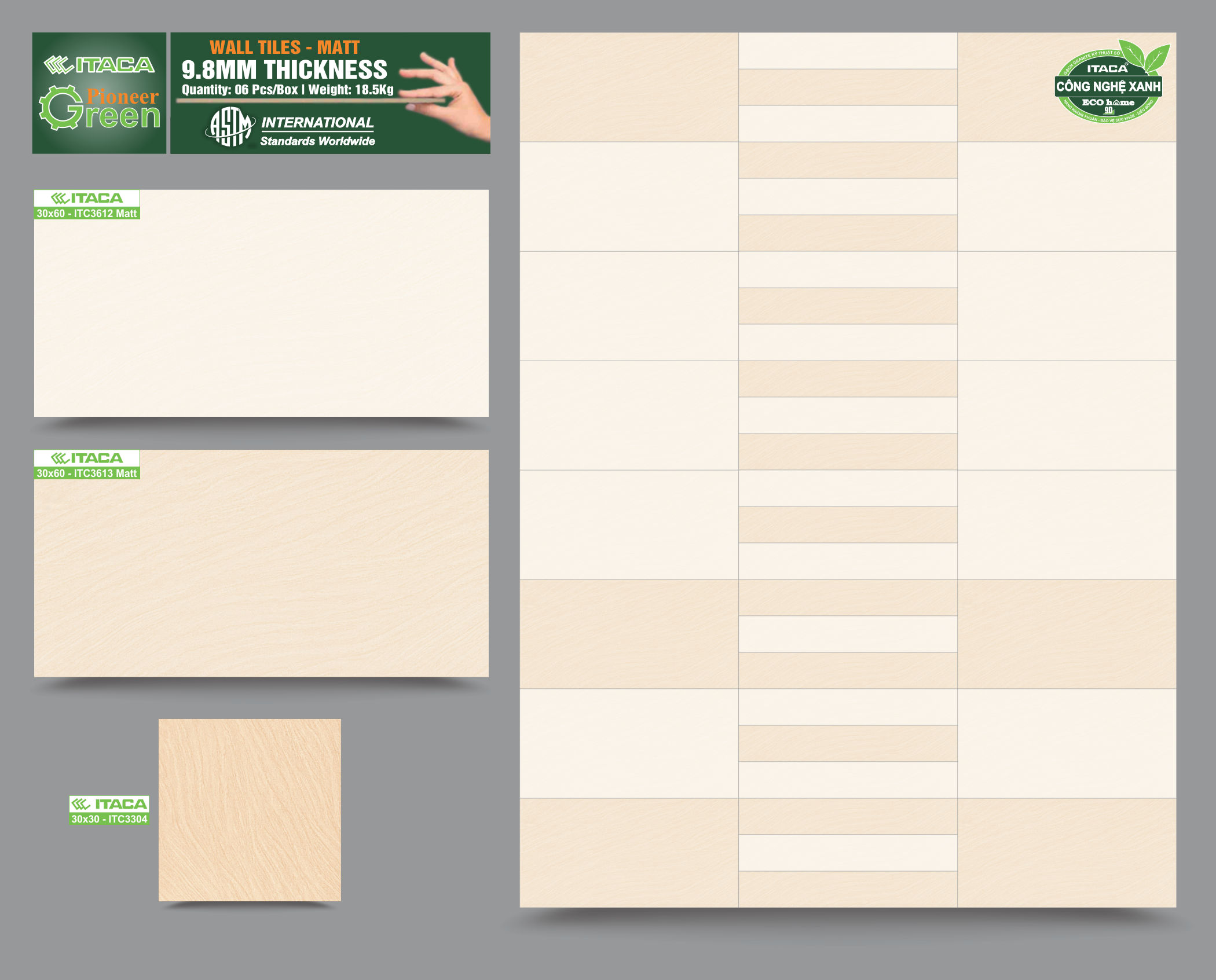 Gạch ốp tường ITACA ứng dụng Công nghệ xanh - thân thiện môi trường, bảo vệ sức khỏe.